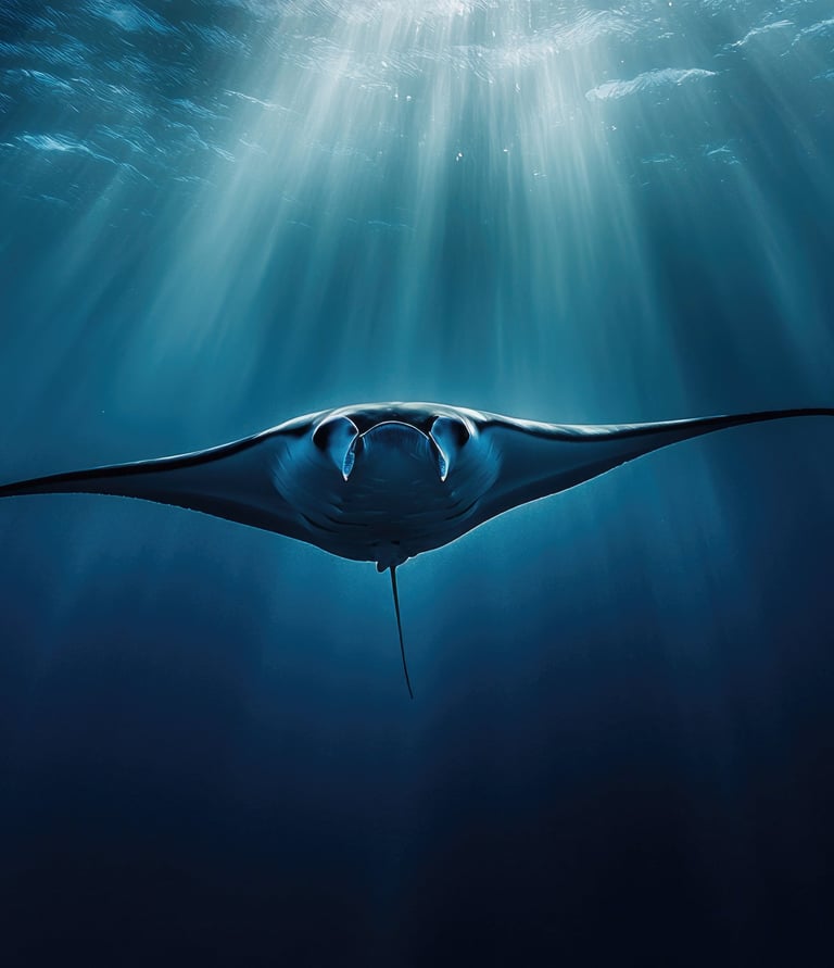 Le mante sono tra le creature più affascinanti e maestose del mare. Con le loro grandi ali triangolari e i lobi che ricordano una pagaia, sembrano danzare sott’acqua con eleganza. Non a caso, vengono spesso chiamate gli "uccelli del mare", perché planano leggere vicino alla superficie e si muovono con grazia sopra il fondale sabbioso.